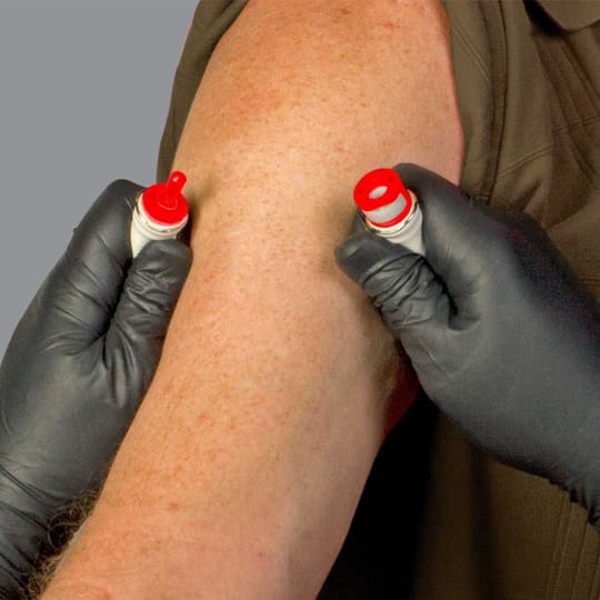 The BOA band is applied to the patient's upper arm with the help of the practical click closure and then rolled down evenly with a little force. This process forces blood into the peripheral veins. The forearms fill with blood and the veins become instantly visible - without a long wait or tedious pumping. Once you have placed the access or finished the treatment, the BOA Constricting Band can be removed quickly and with one hand using the 2 Finger Quick Release System. This way, the vein access is placed in just a few steps and you can concentrate on the essentials again in dicey situations. The disposable product guarantees hygienic use and can be easily disposed of after use.