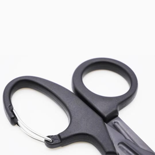 Designed for Safety and Efficiency Our shears are designed with your safety in mind. The bent tip and blunted edge ensure that you can cut clothing from injured people quickly and safely. The fine-toothed blades provide anti-slip functionality for easier cutting. Plus, the carabiner can be used to clip onto your waist for easy access.