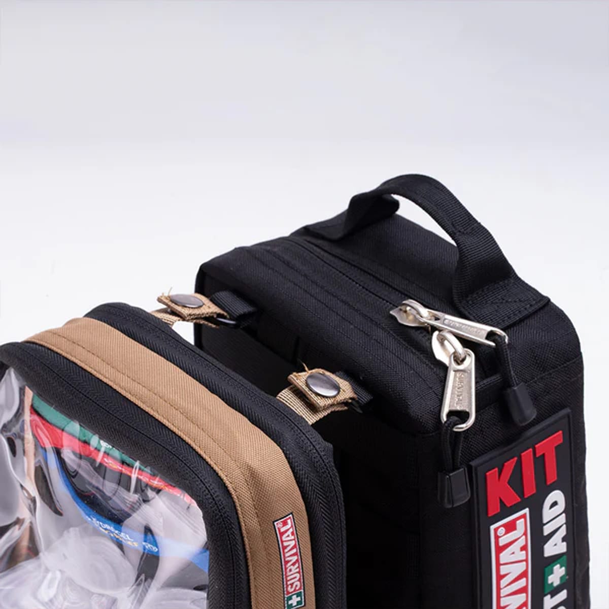 Description The Travel First Aid KIT combines SURVIVAL’s popular Vehicle First Aid KIT with our Remote & Outdoor Module. With the portable 'clip and go' system, it’s every adventurer’s new best friend.